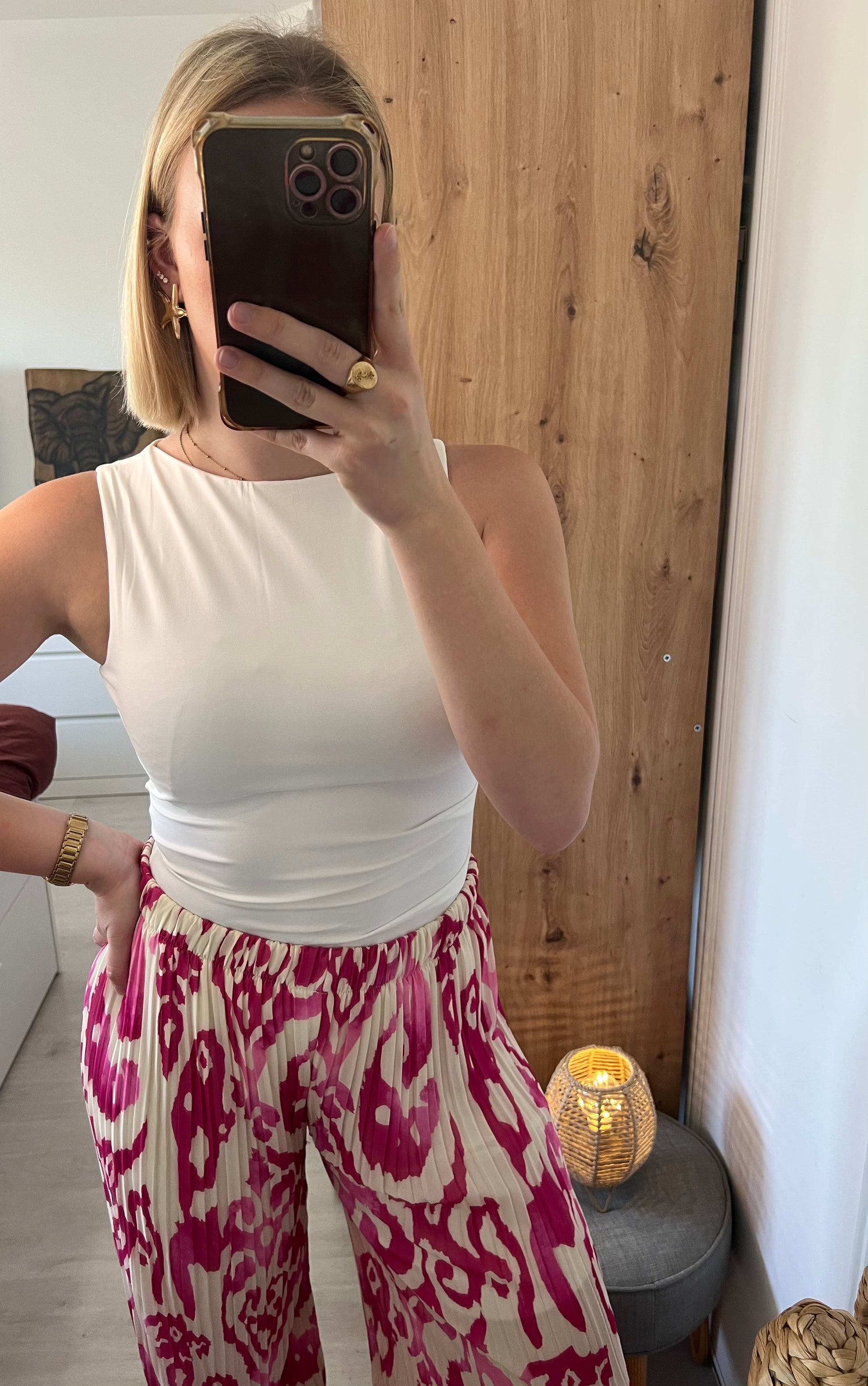 🤍 Ce top blanc, conçu avec une doublure à la poitrine, assure maintien et tranquillité. Sa fronce asymétrique apporte une touche moderne et élégante, tandis que le tissu stretch garantit un confort ajusté. Avec son encolure ronde classique, ce modèle allie sophistication et simplicité pour un style à la fois intemporel et raffiné.