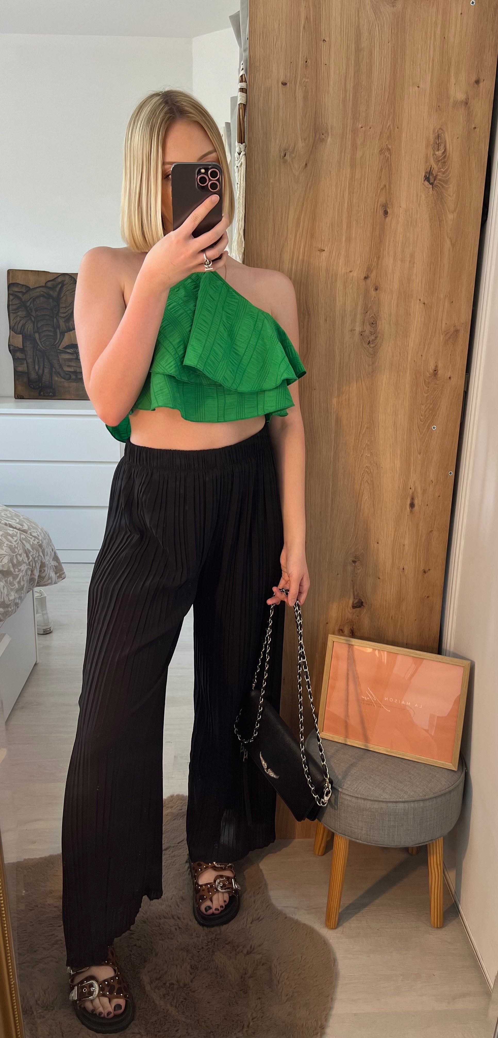 🖤 Le pantalon Callie noir allie élégance et confort grâce à son tissu plissé fluide. Sa taille élastique assure une adaptation parfaite à toutes les morphologies, offrant une silhouette flatteuse. Doublé jusqu’en bas, il garantit un tombé impeccable et un confort optimal tout au long de la journée. Idéal pour un style sophistiqué et facile à porter.